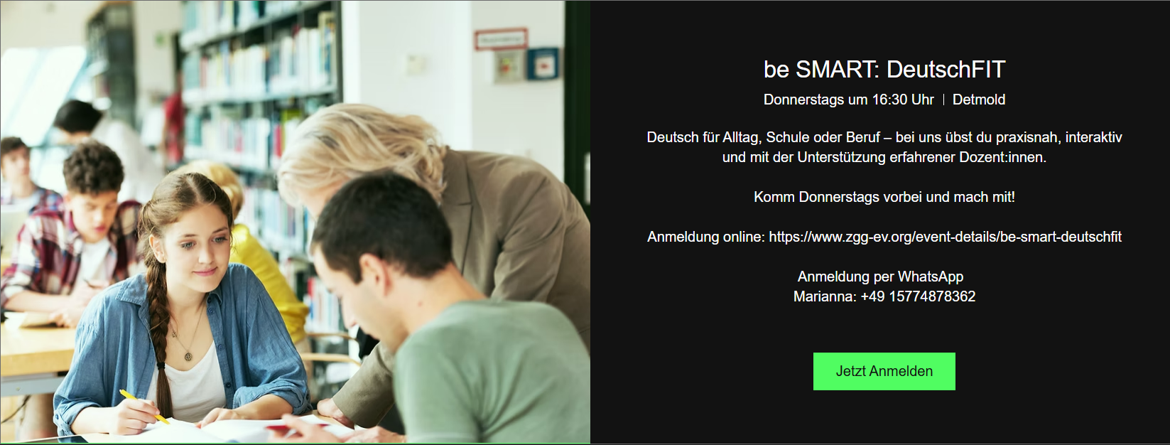 Kostenfreie Deutschkurse. Sie können auch schreiben, lesen und rechnen lernen. Es gibt auch Hilfe für die Vorbereitung auf den Schulabschluss in Deutsch, Mathe und Englisch.